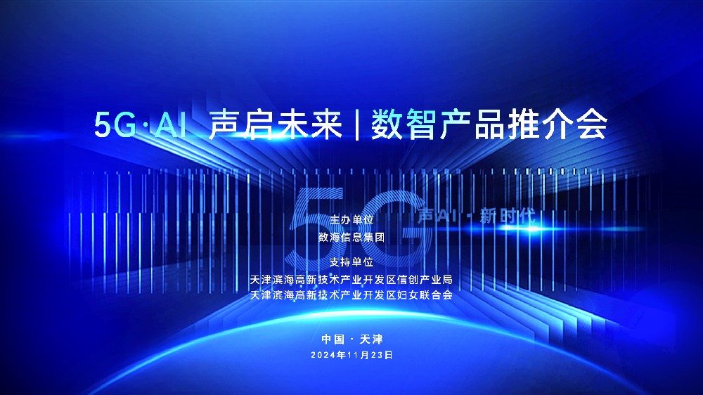 2024年11月23日,由數海信息集團主辦的以“5G?AI 聲啟未來”為主題的數智產品推介會在天津市海泰大廈三樓報告廳舉辦。會議旨在:全面解讀數字經濟時代下,基于5G?AI技術的數字化、智能化數字平臺為線下實體數智賦能以及聲學AL技術創新和產品行業應用”。天津市濱海新區婦聯、天津濱海高新區信創局、天津濱海高新區群團工作部、天津濱海高新區新經濟局、科創中國知識產權服務中心、天津市高校校友會科技經濟融···